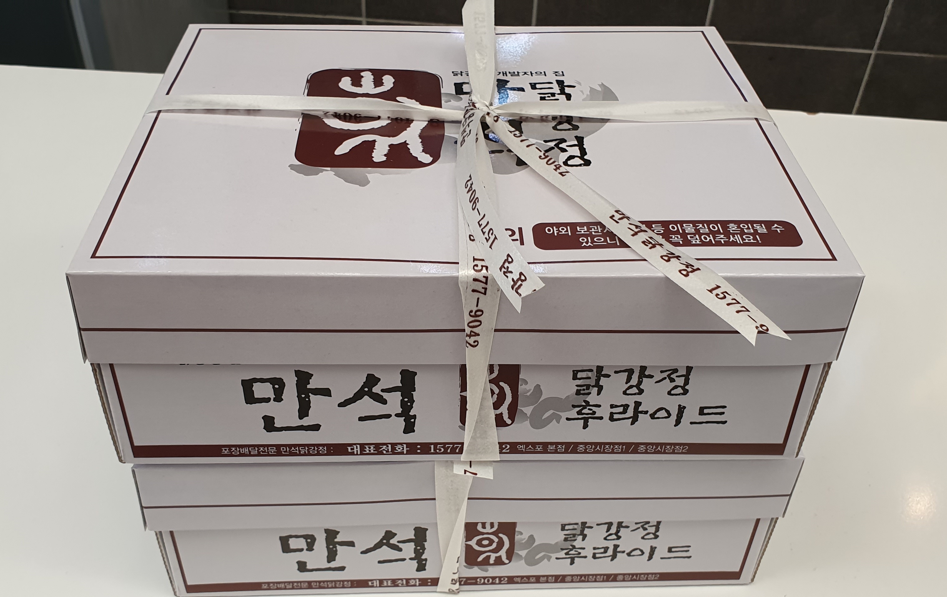 오랜 길 줄을 서서 어렵사리 닭강정을 구매한 후