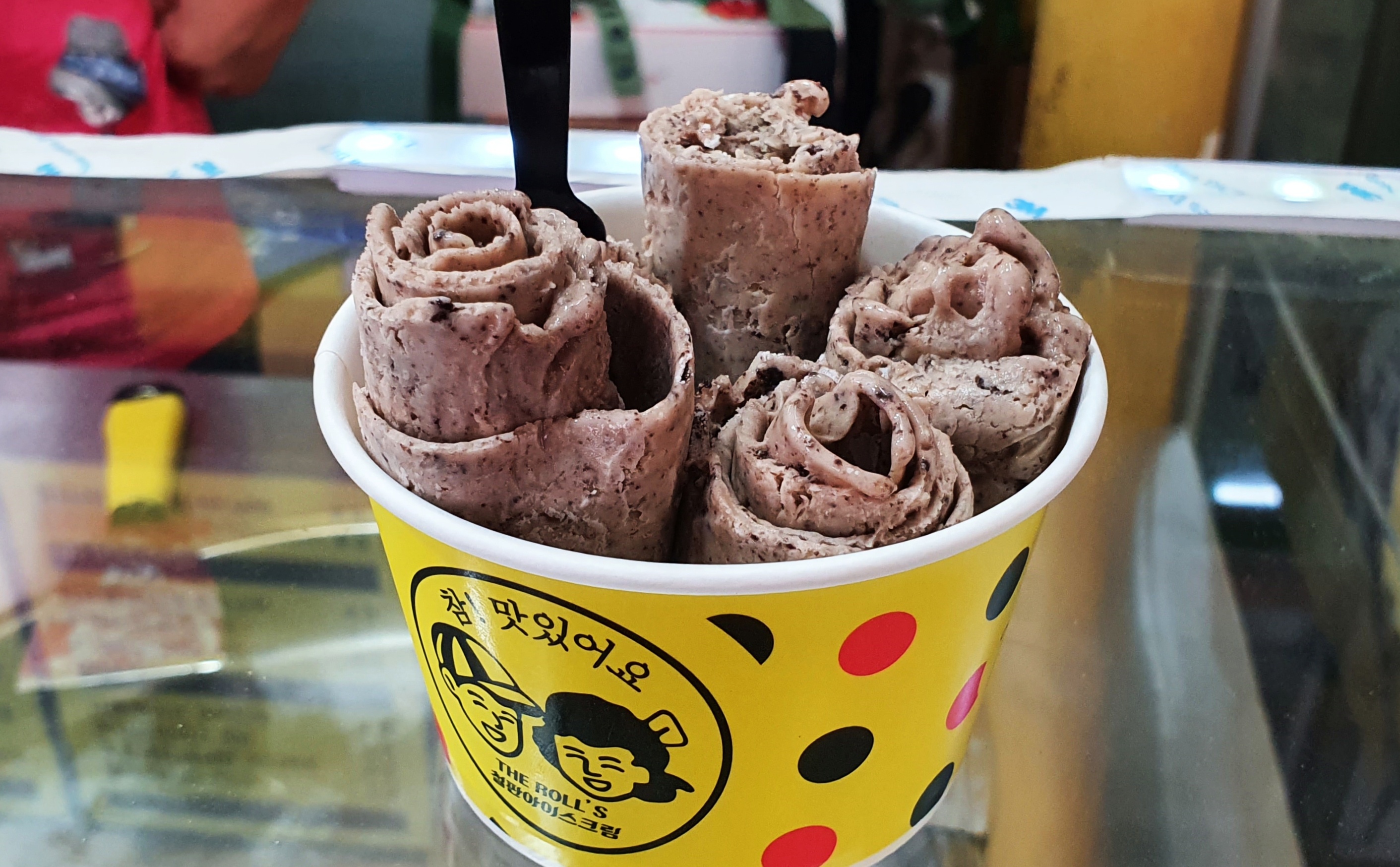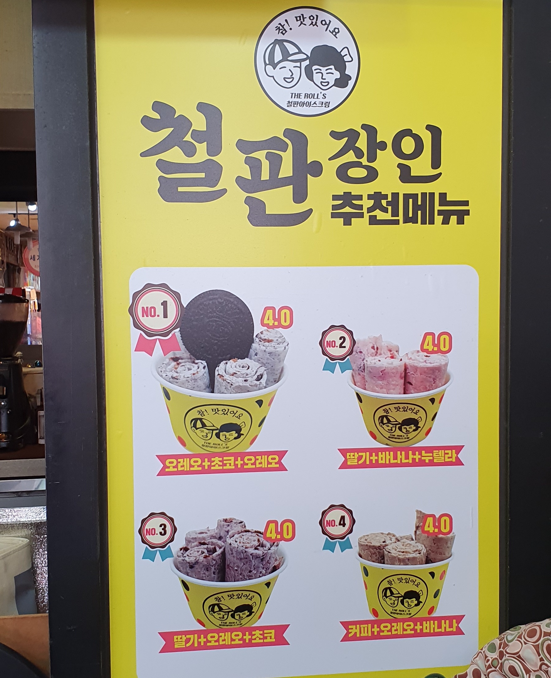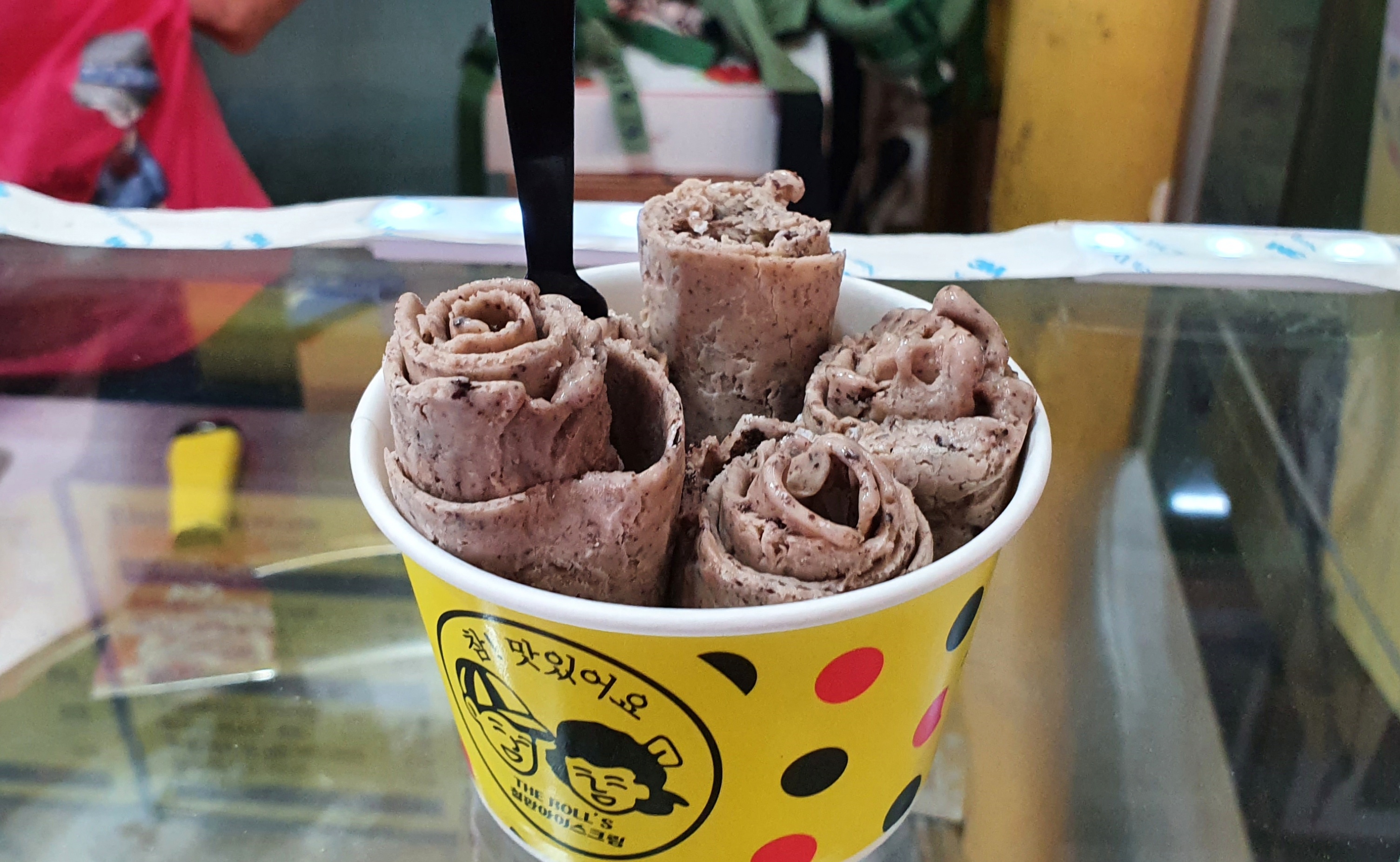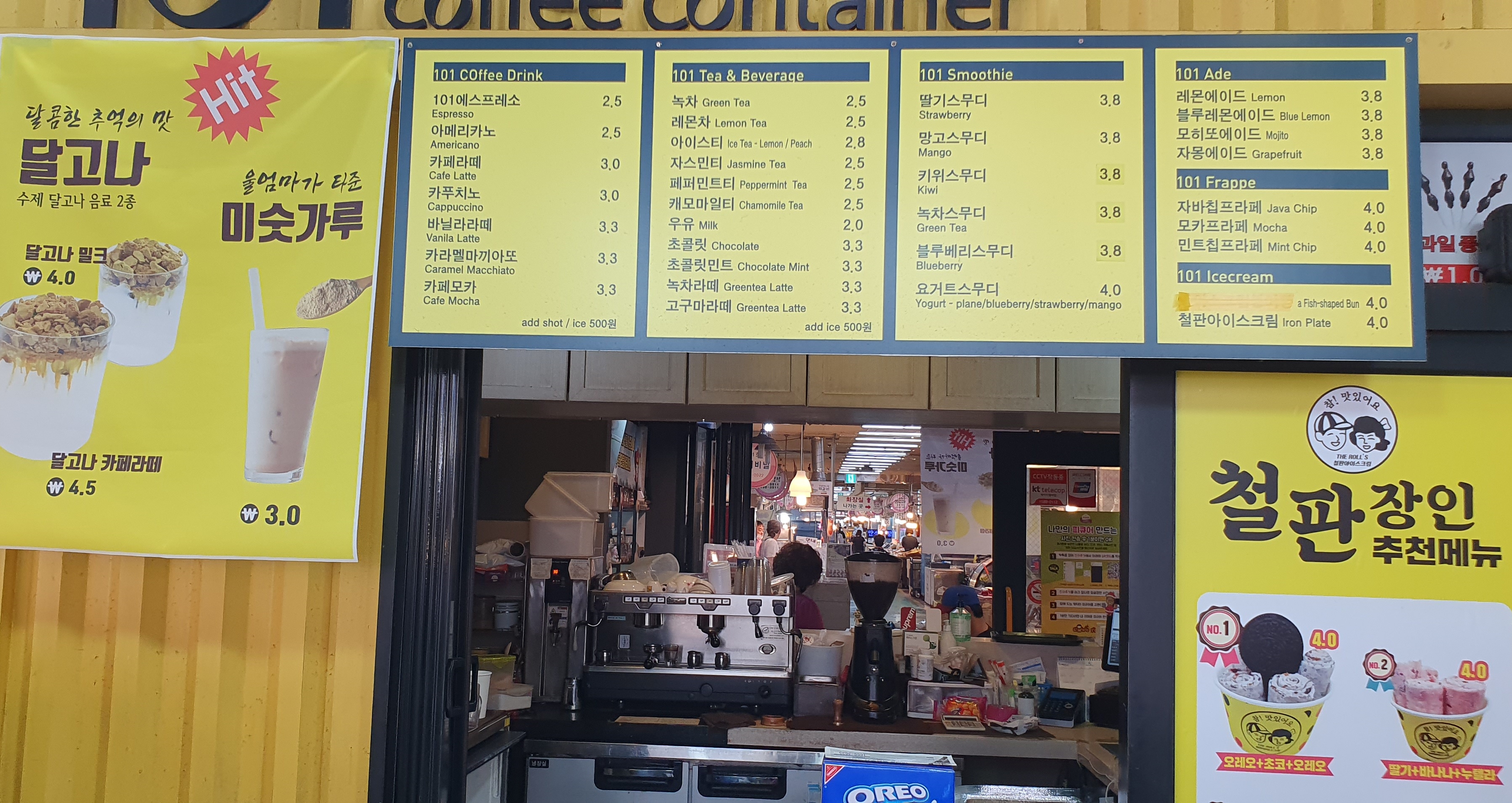 속초관광 수산시장 내 철판 아이스크림 매장에서
