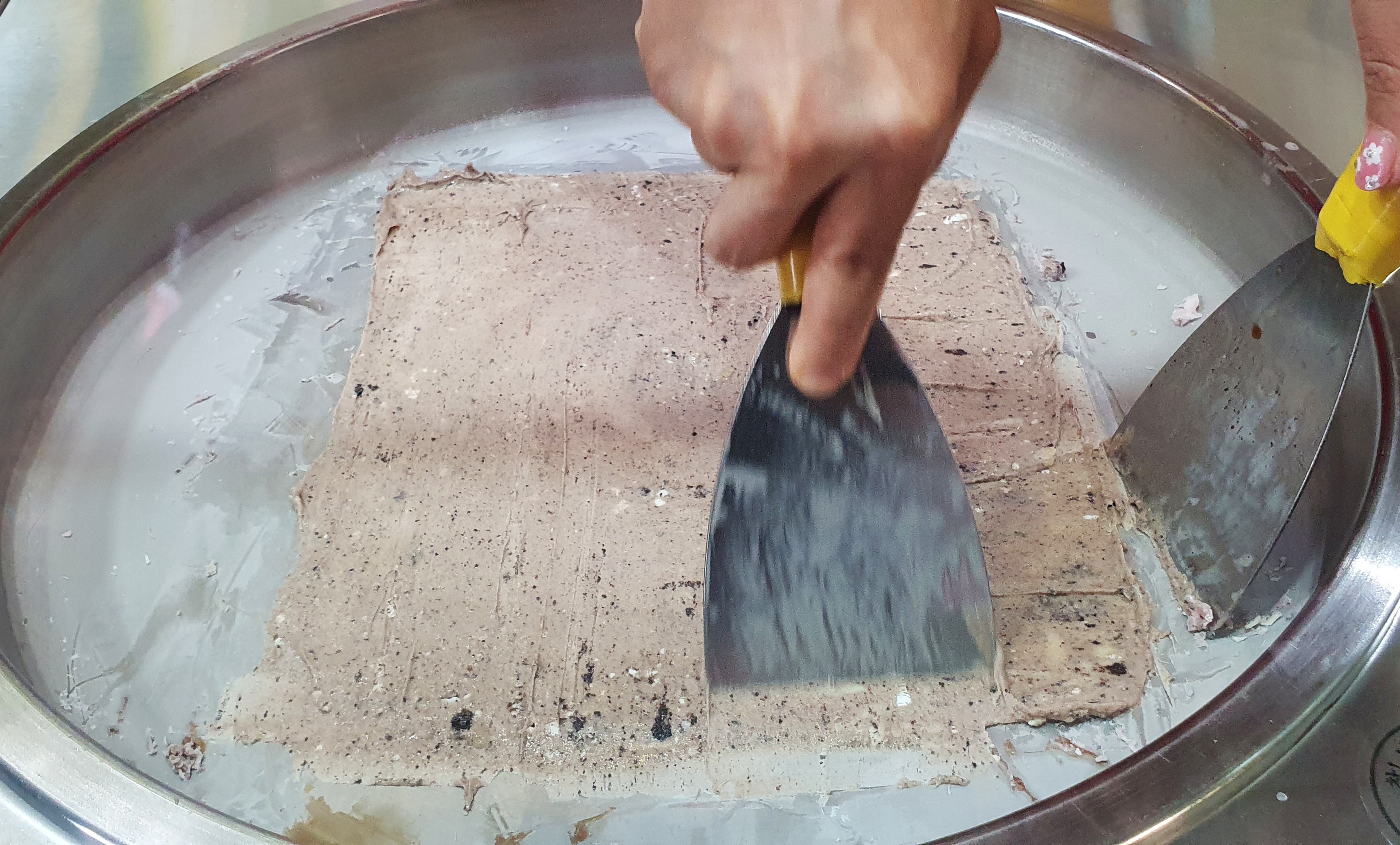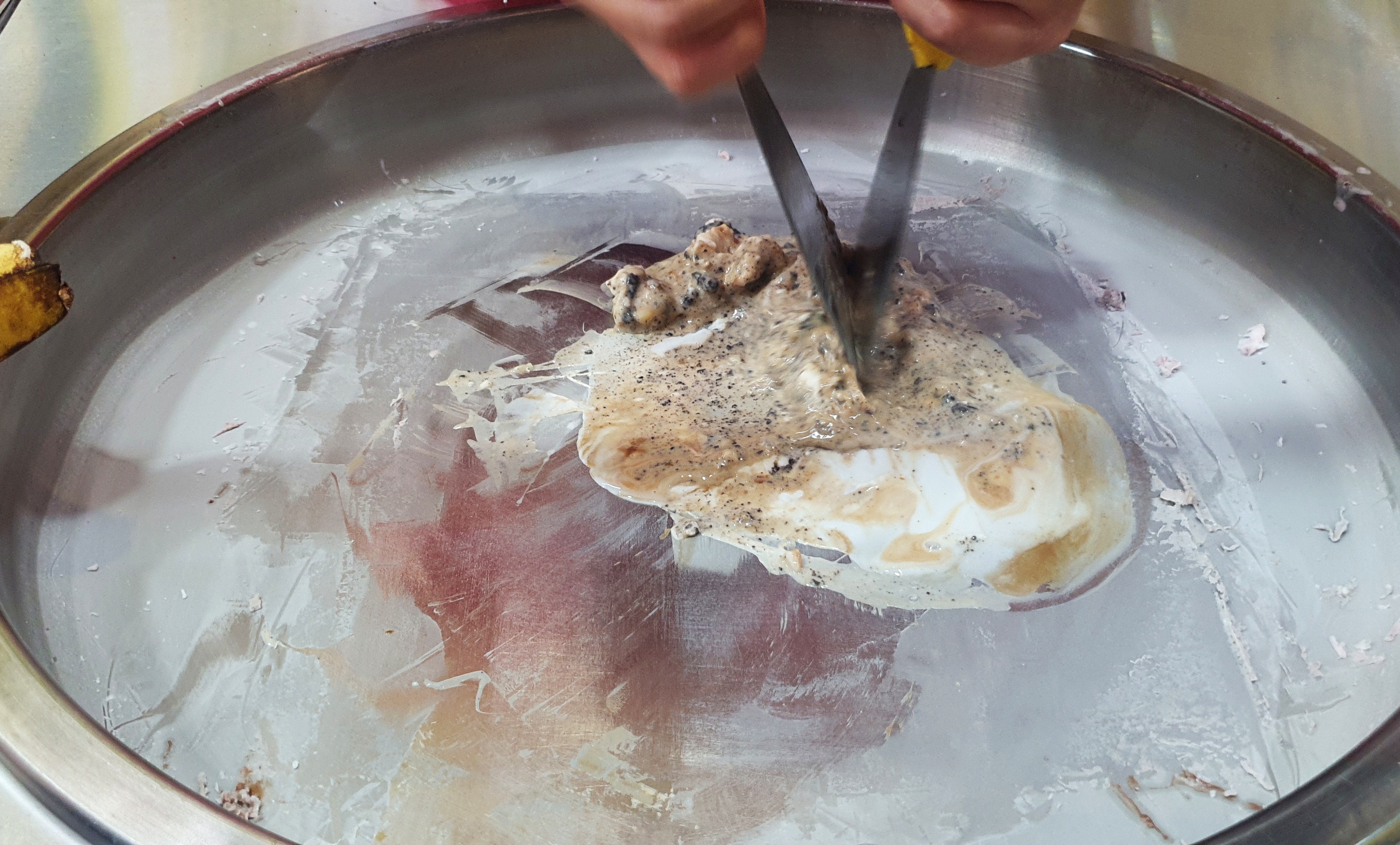 철판 아이스크림을 주문하면 그때부터 다양한 재료를