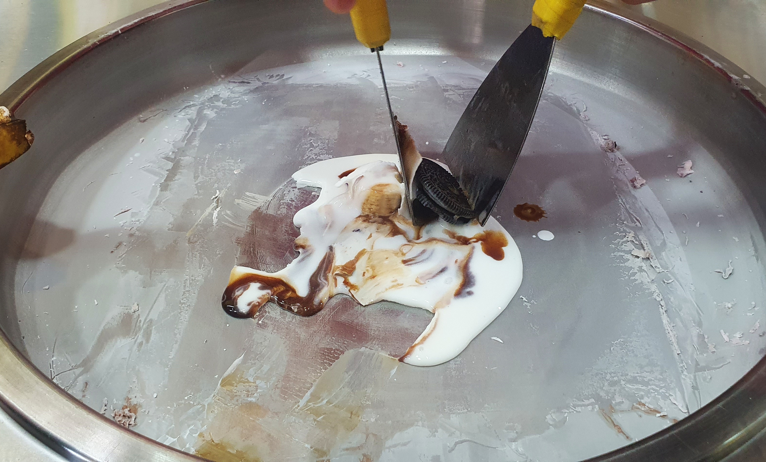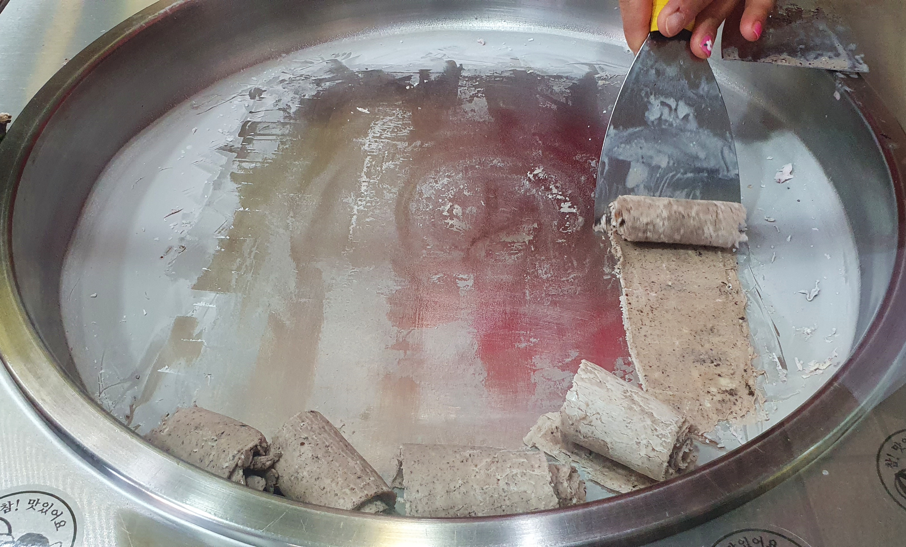 철판아이스크림 다양한 재료들을 철판 위에 올리고