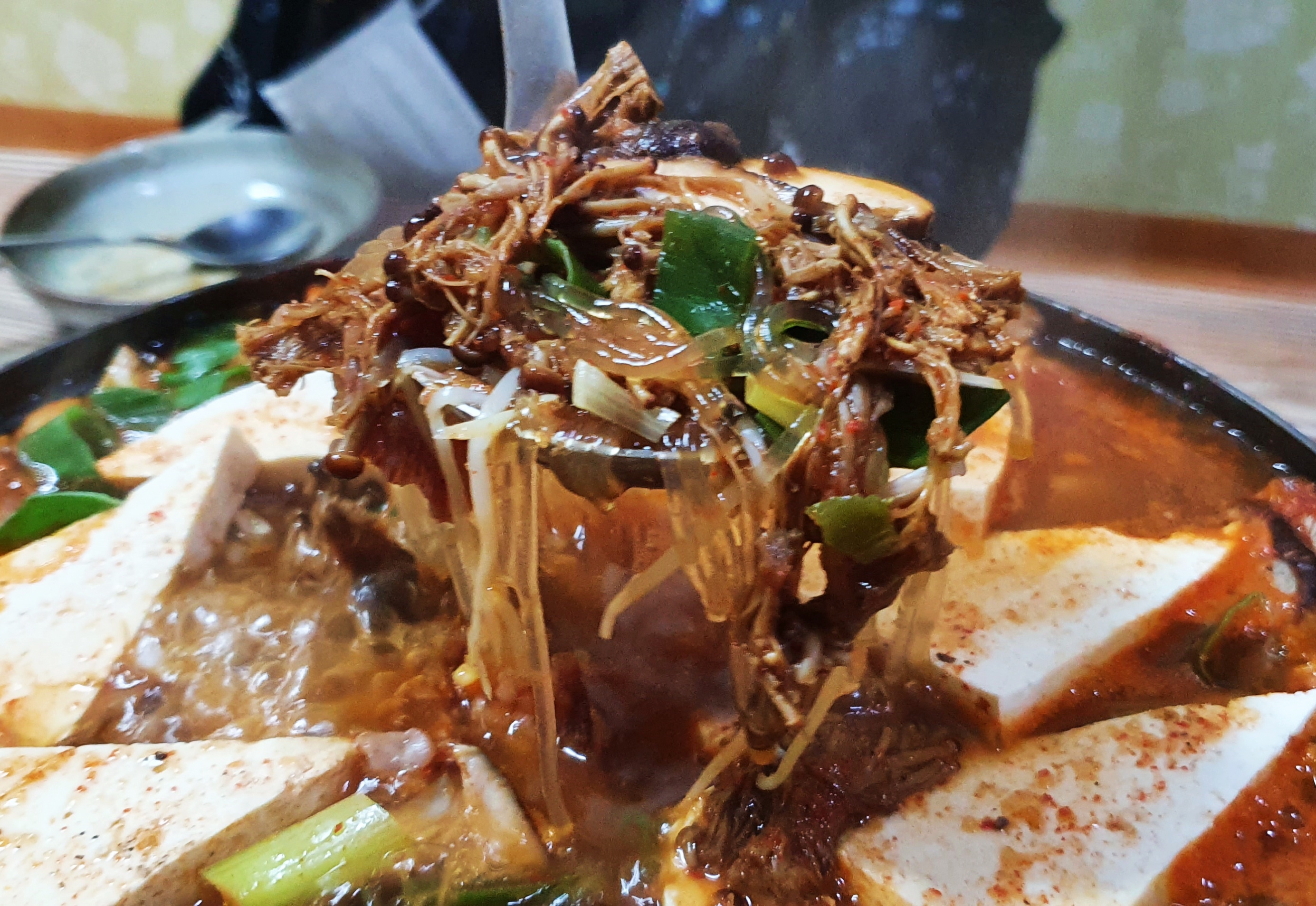 두부 버섯전골 특유의 냄새까지 풍기며