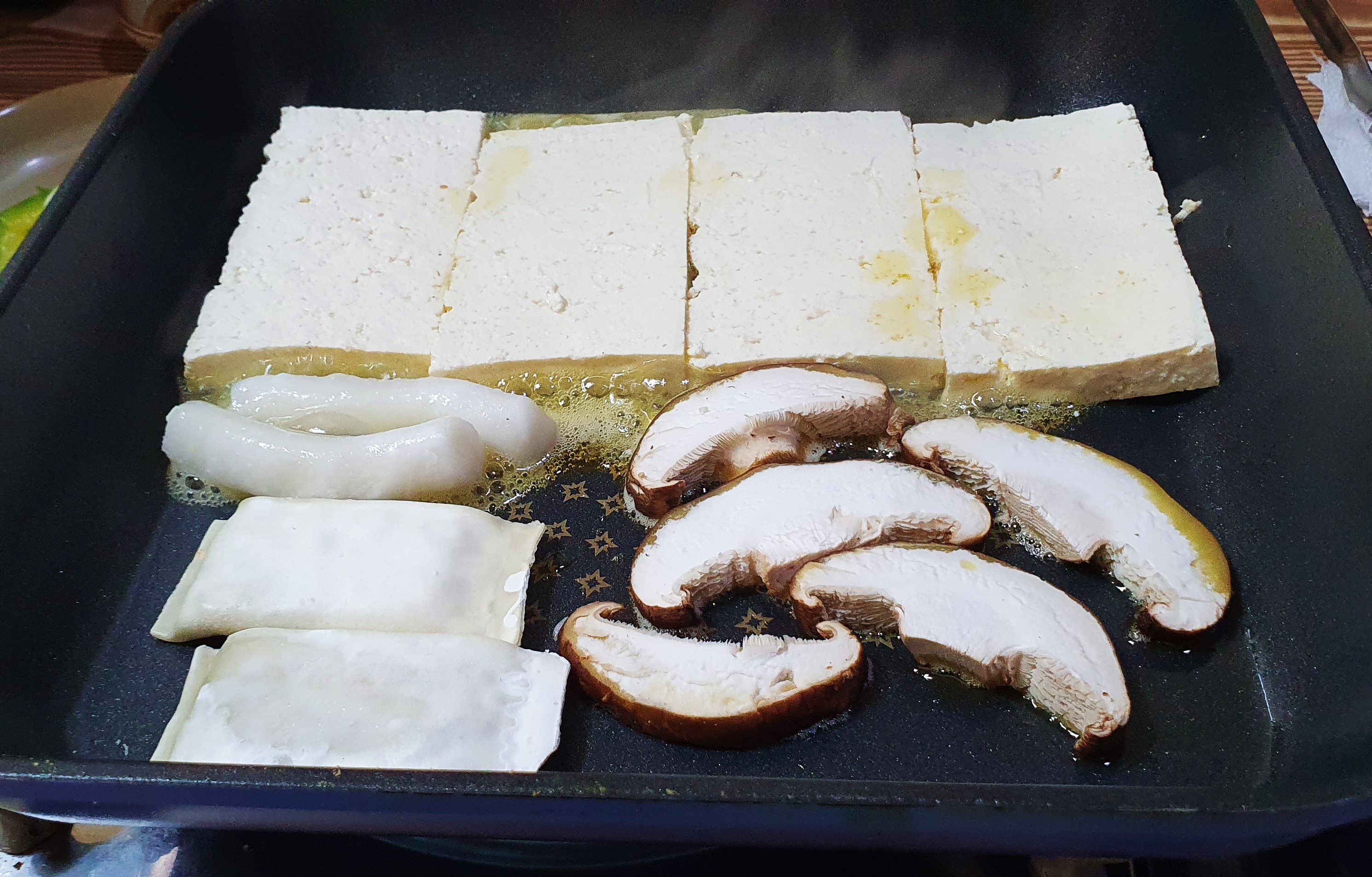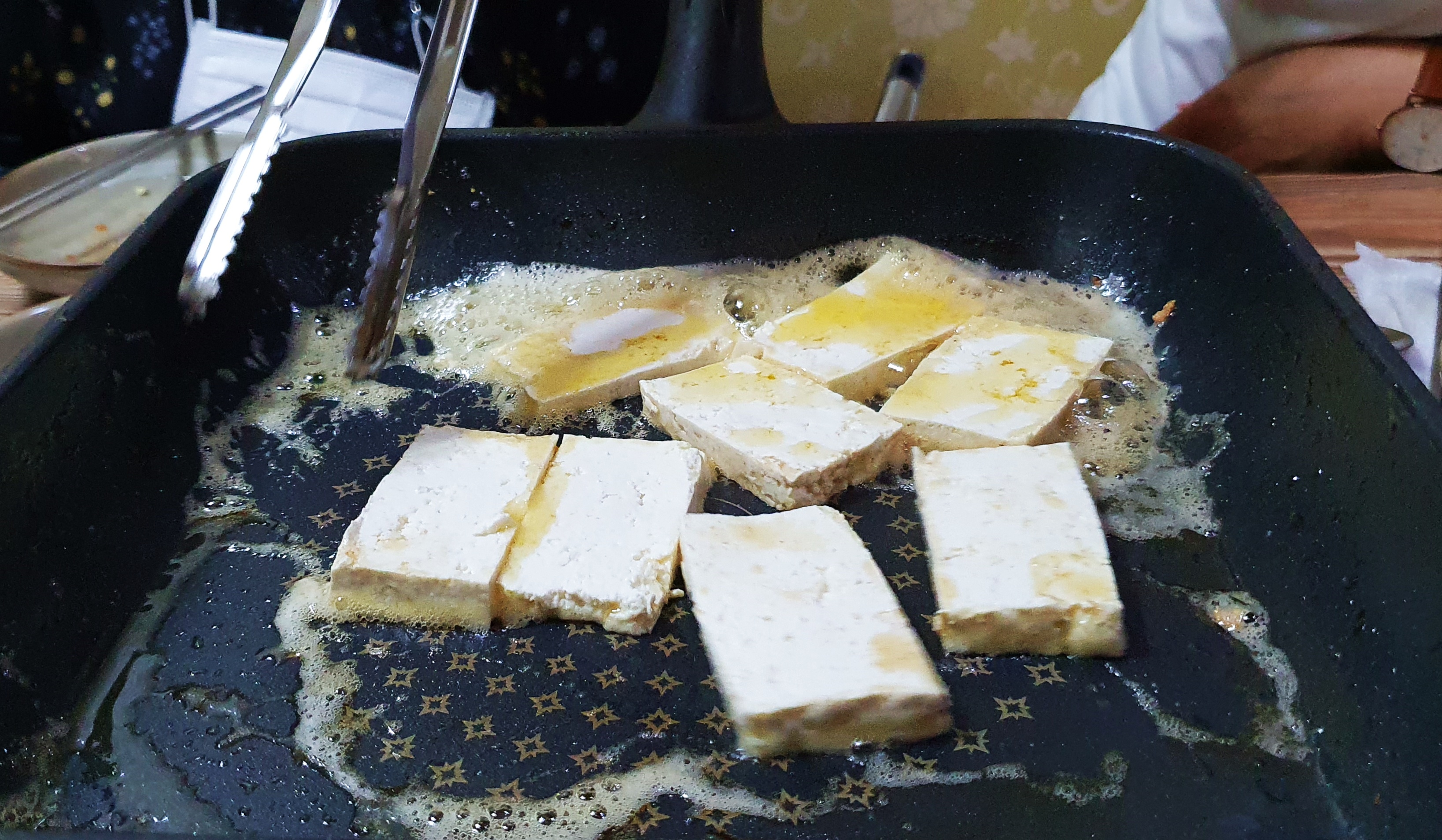 노릇노릇하게 두부 등을 굽고 있습니다.