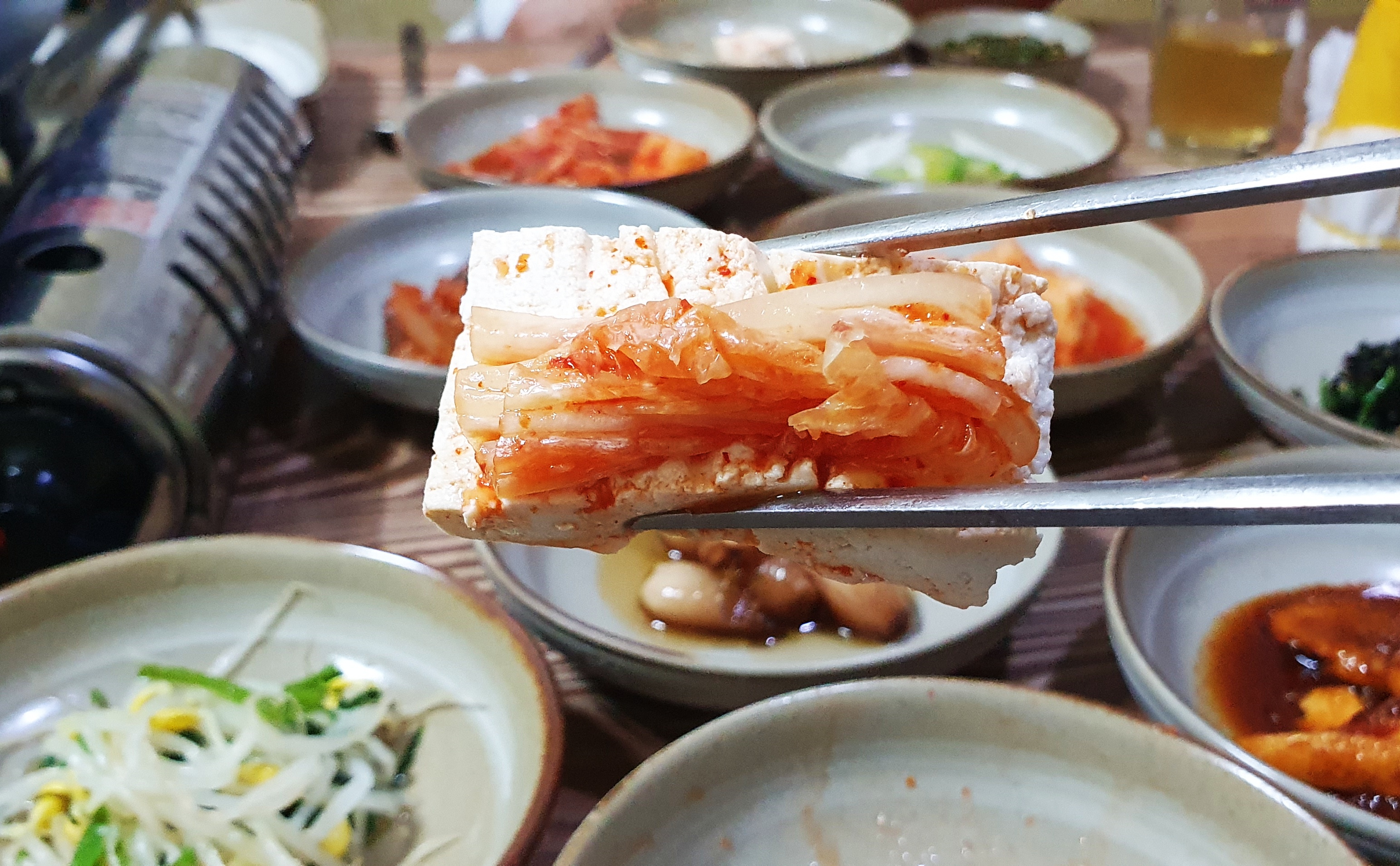 발효된 배추김치로 두부를 싸 먹으니 이 또한