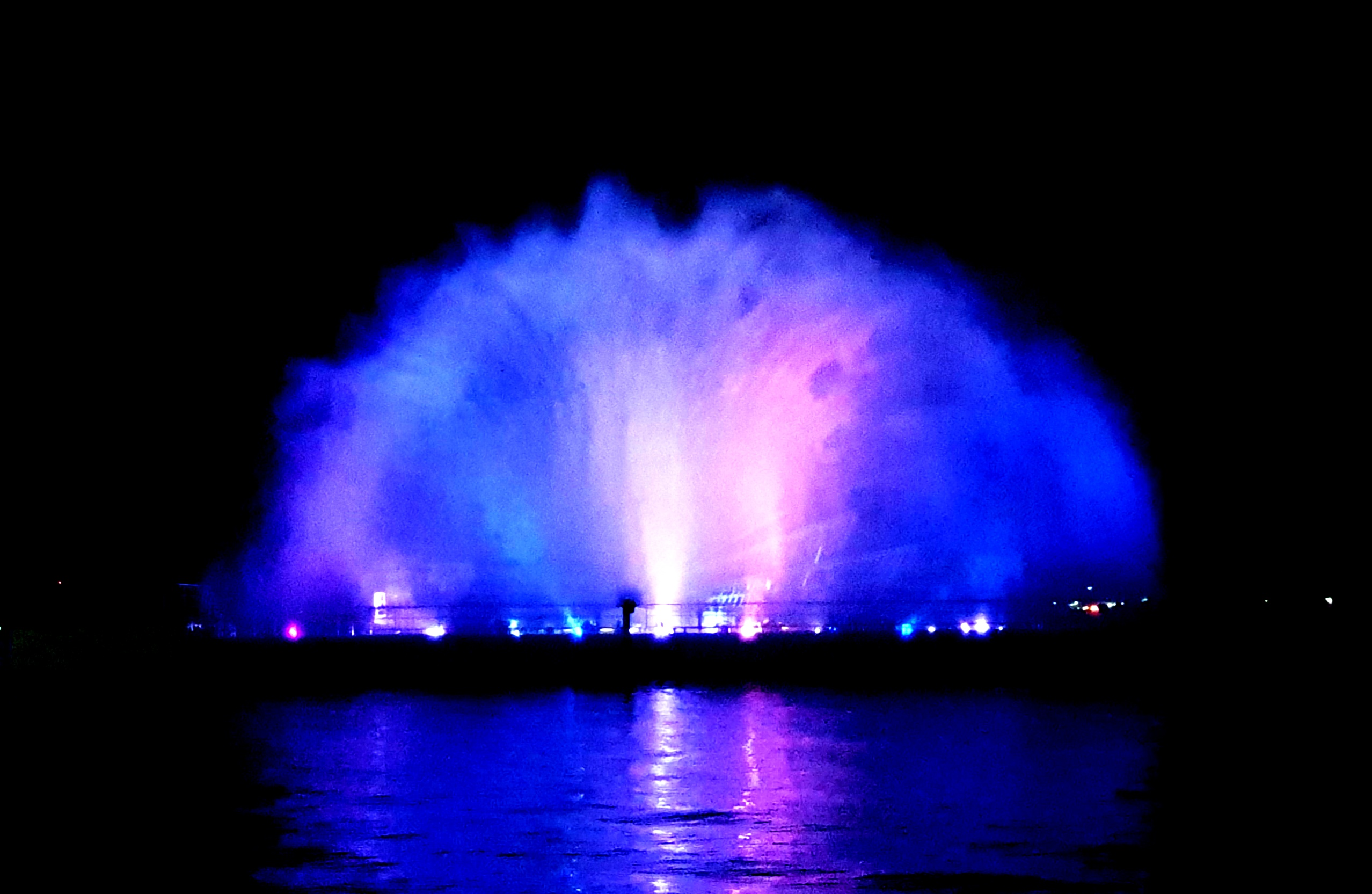 거대한 물줄기와 함께 영상 레이저 빛이 뿜어내는