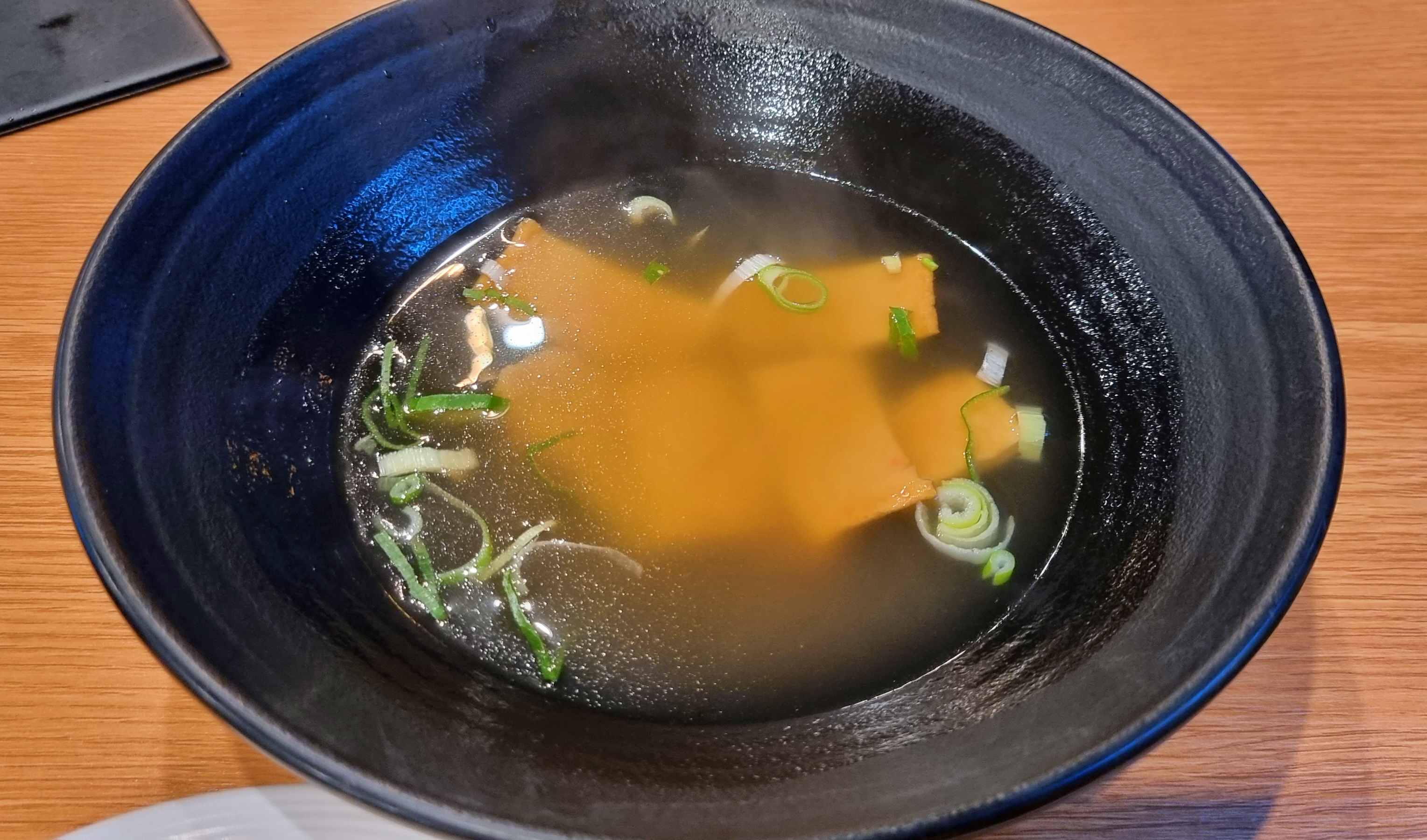 오뎅국물을 포함한 통닭 무와 샐러드 그리고