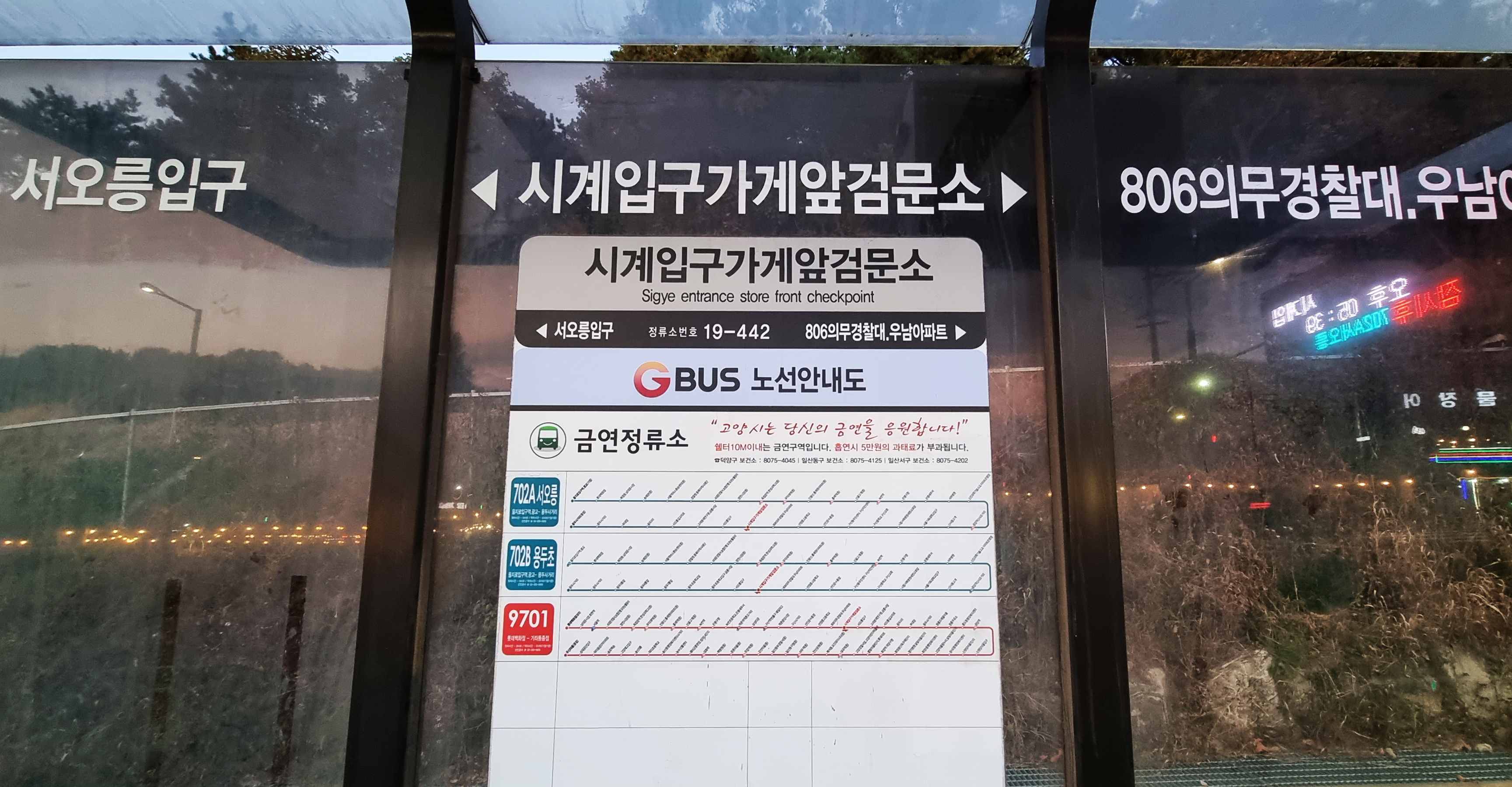 시계 입구 가게 앞 검문소 정류장 하차