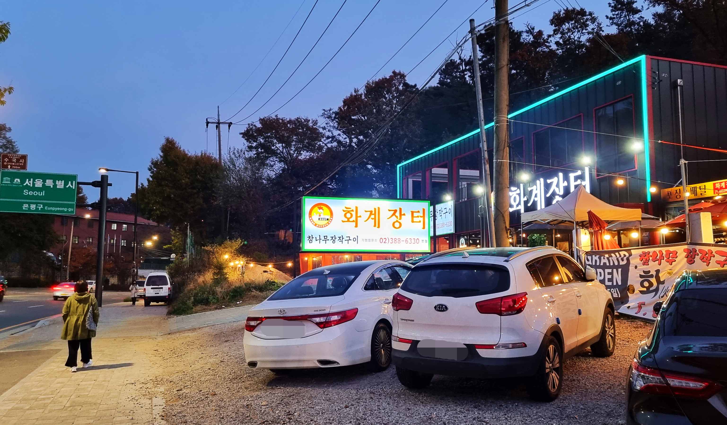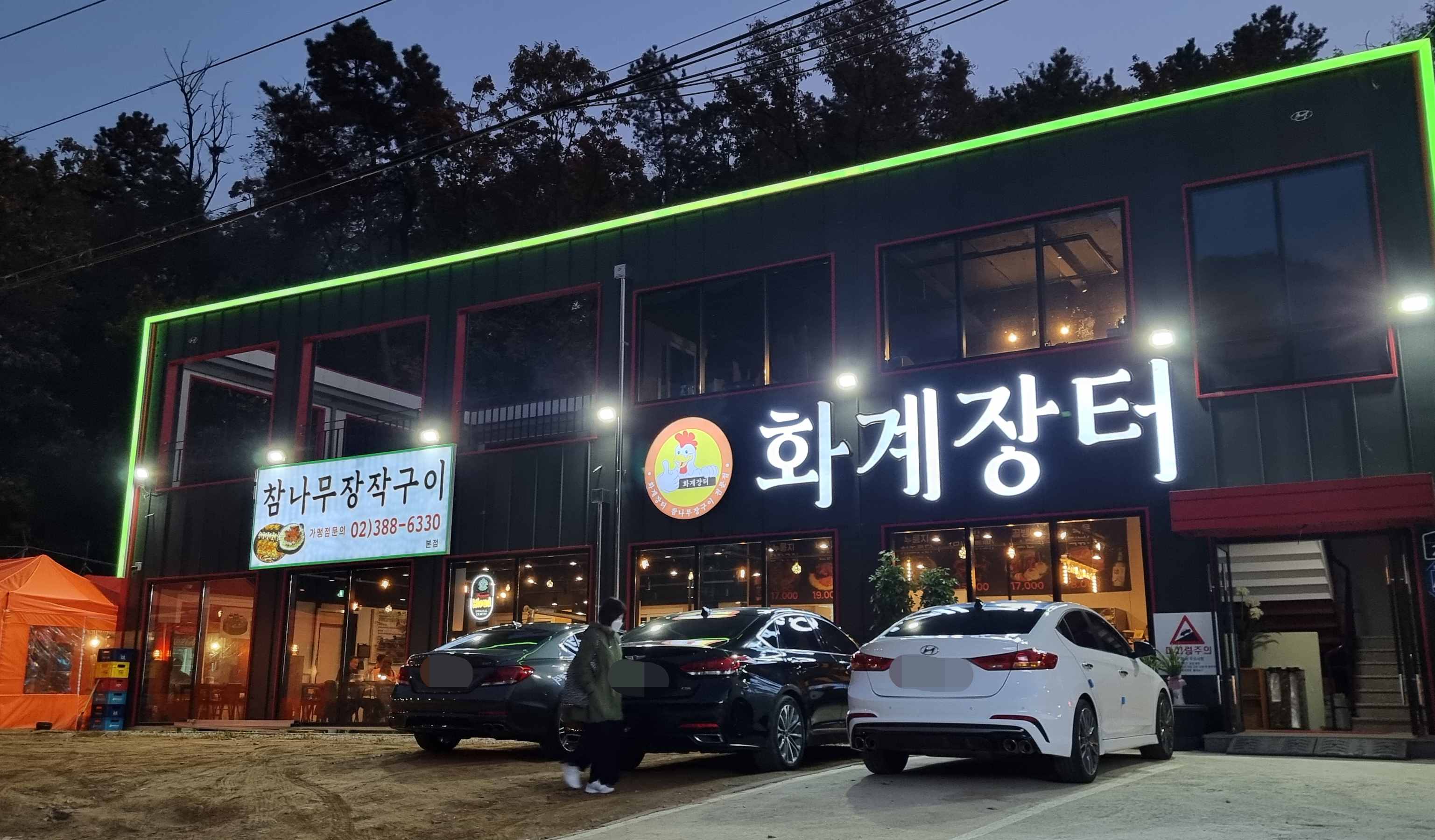 참나무 장작구이 전문점인 화계장터가 보입니다.