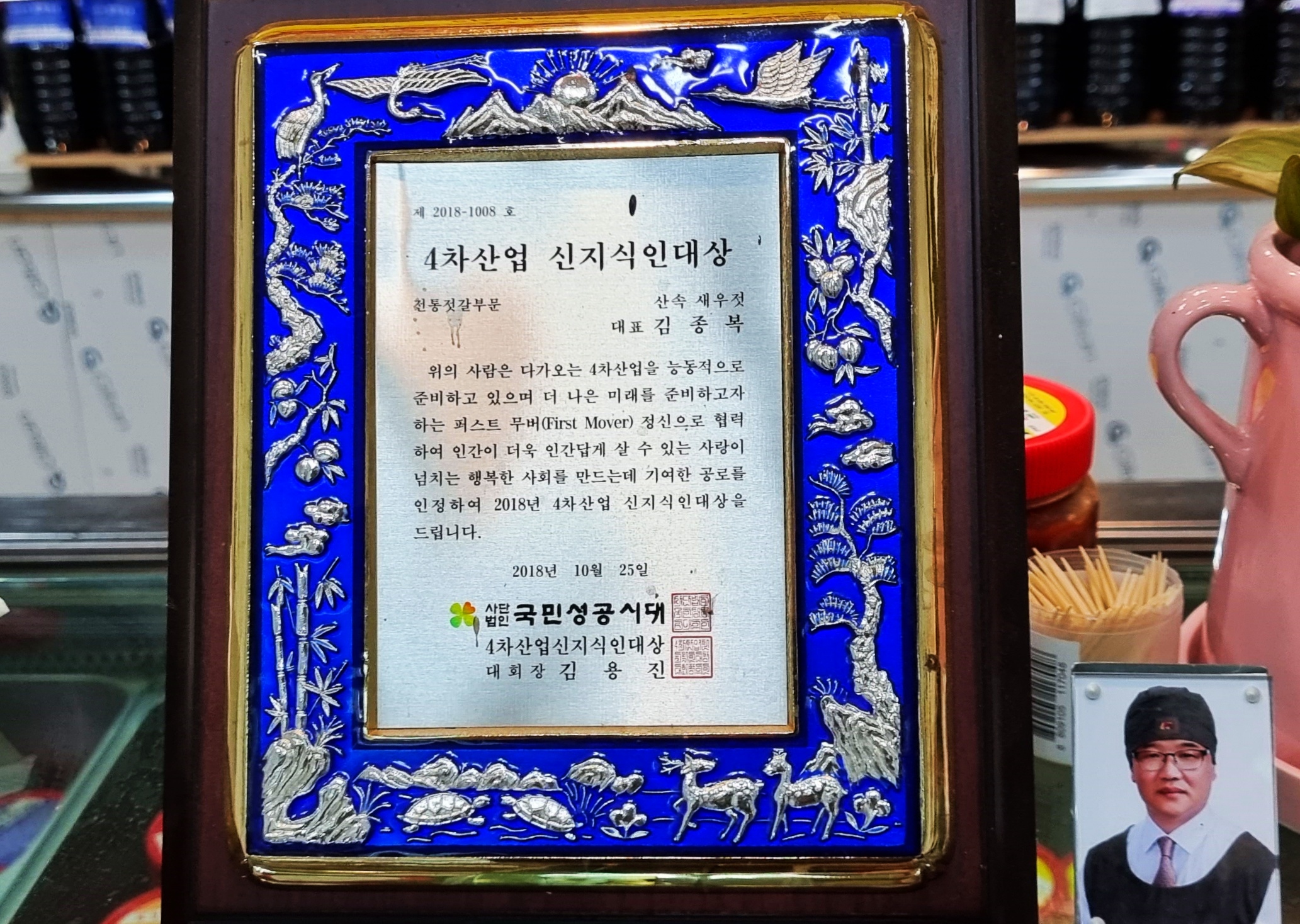 2018년 4차 신지식인 대상(전통젓갈부문) 수상