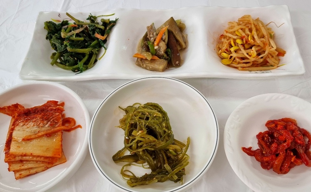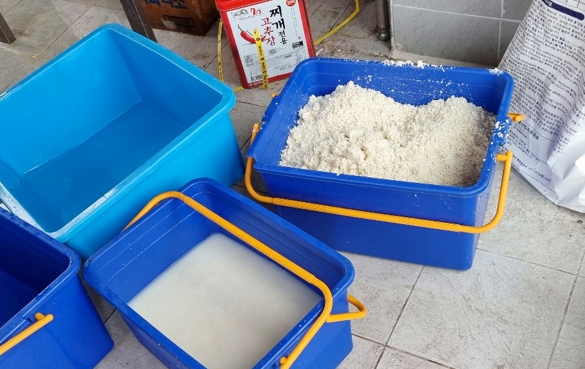 부미식당의 음식 재료인 콩, 쌀, 김치,