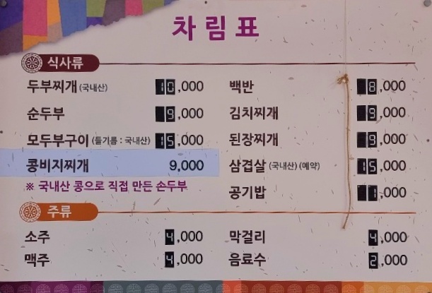 국내산 콩으로 만든 손두부 맛집인 부미식당