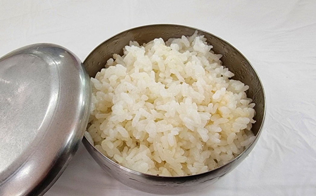시간을 맞추어서 지은 곱슬하고 따뜻한 흰쌀밥과