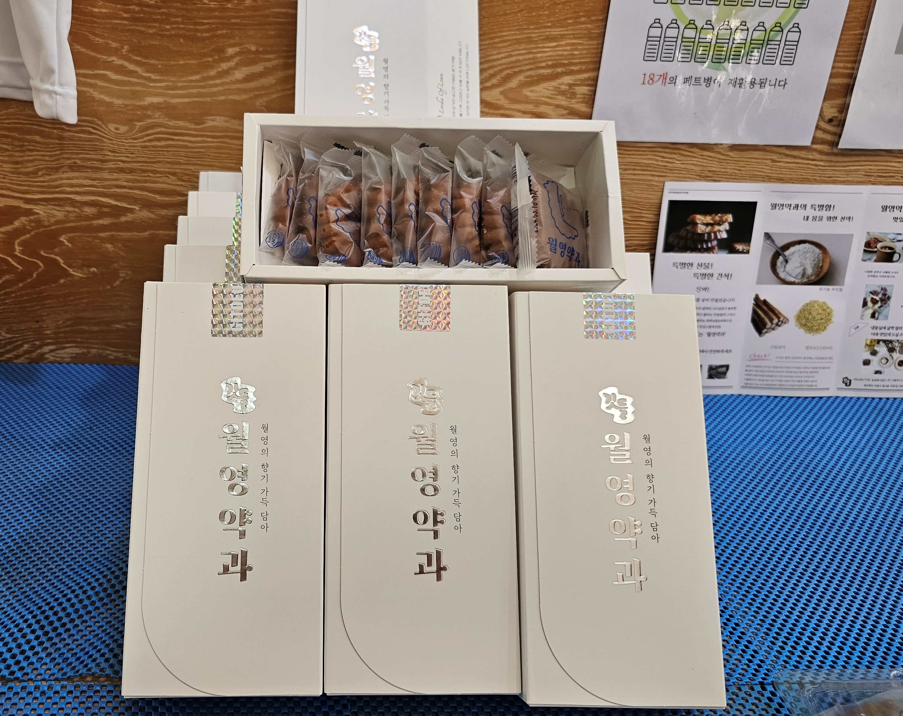 카운터에서 보니 입가심하기 좋은 황기엿과 함께