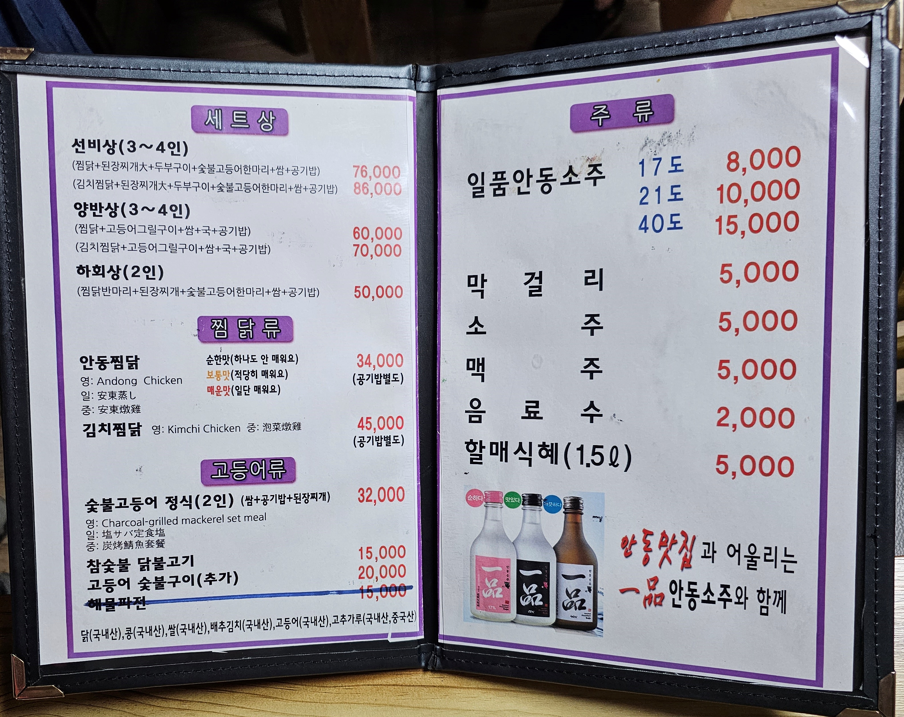 안동 하회마을 근처 찜닭 간고등어 맛집