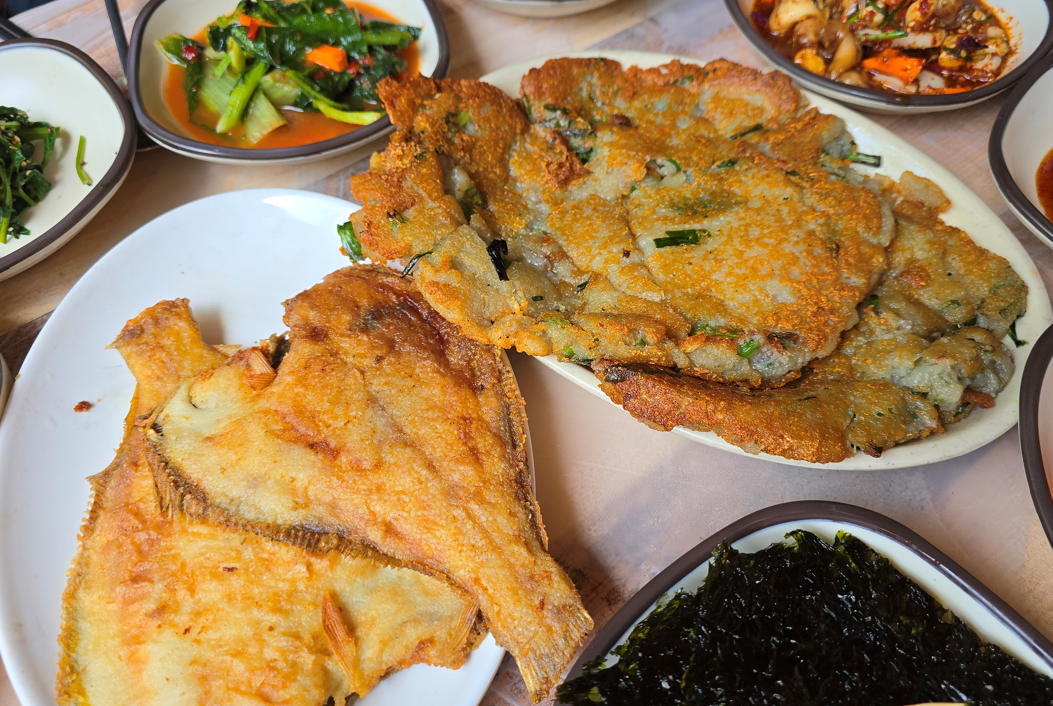 생선산채정식의 전체의 모습 중 감자전과