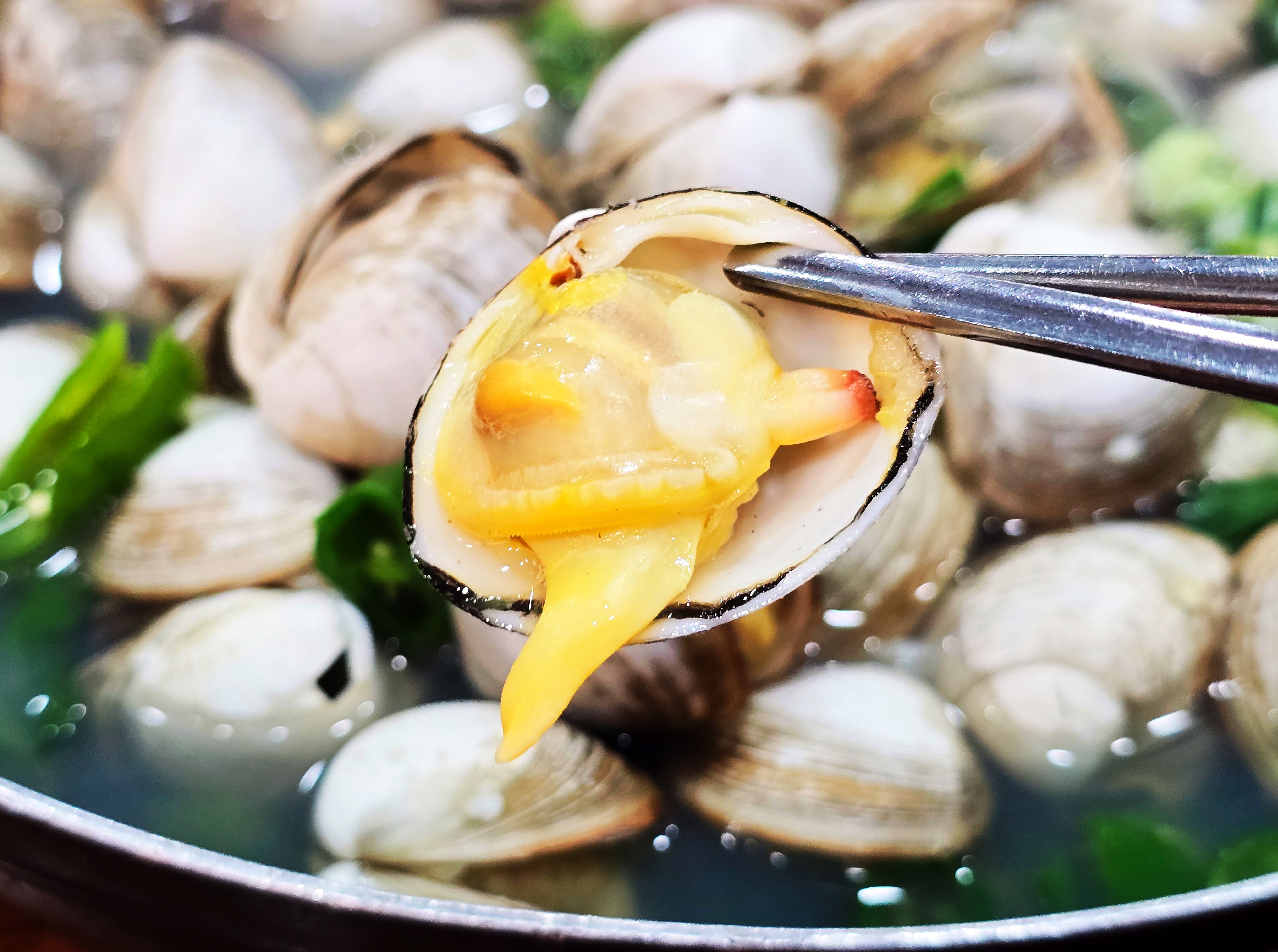 면발은 쫄깃하면서 국물은 물총조개의 맛이