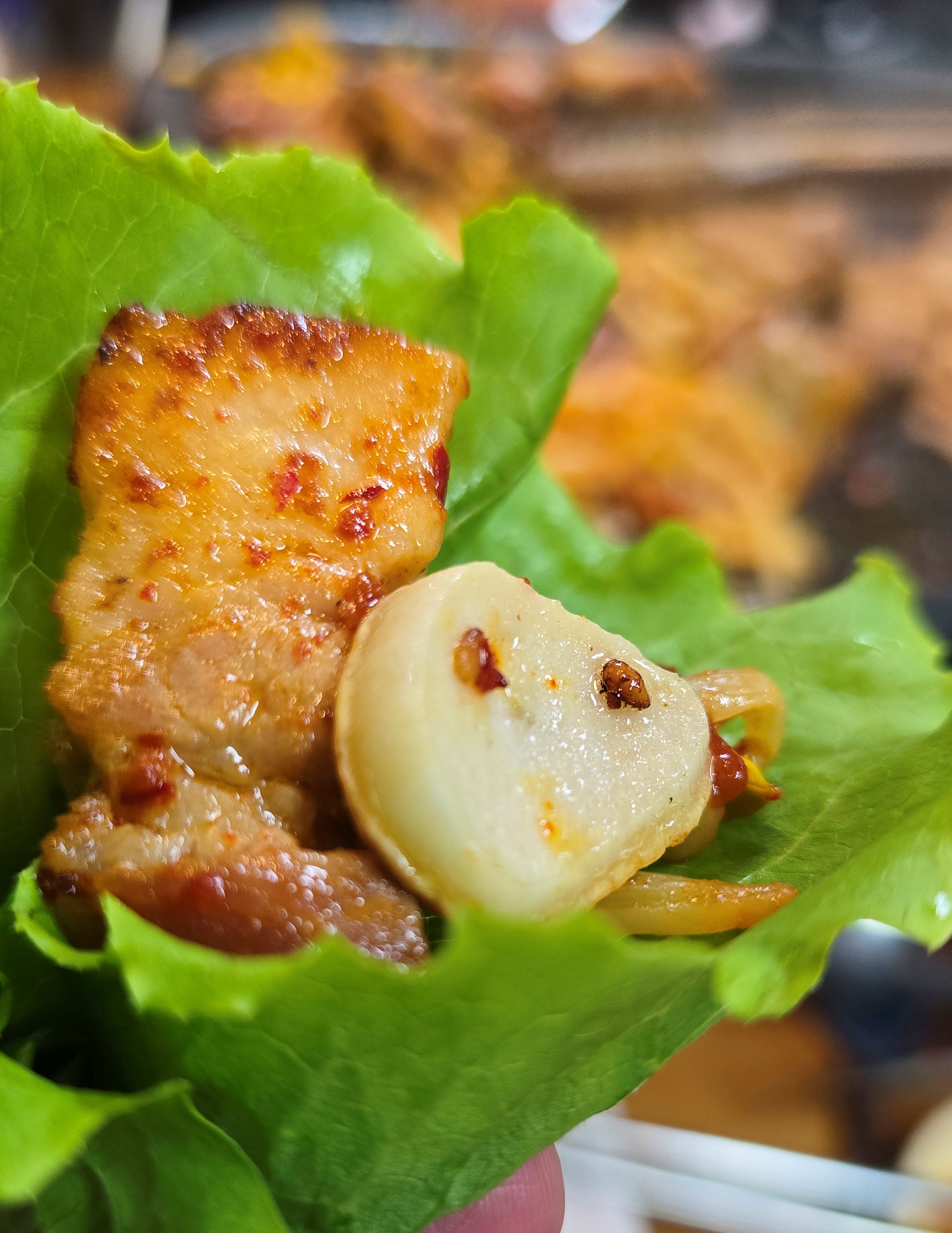 불판 위에서 지글지글 익는 소리만으로도 군침이 돌았어요.