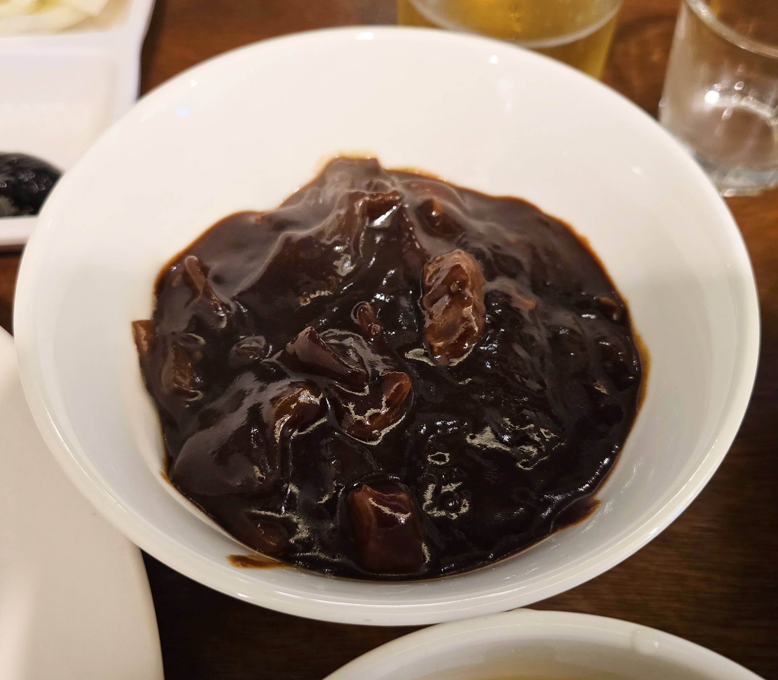 짜장 소스와 계란국, 그리고 맥주 한 잔까지 조화를