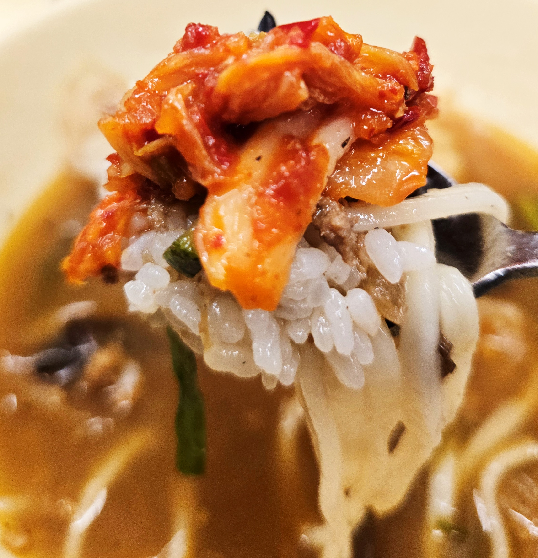 그 자체가 완벽한 한 끼다. 마지막에 김치까지 올리면