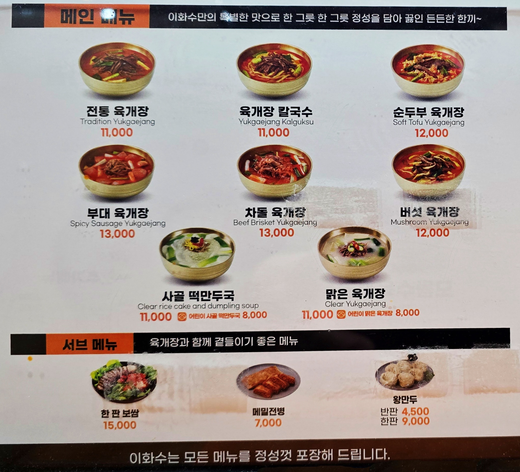 ⭐ 3. 메뉴판 — 육개장 전문점다운 탄탄한 구성
