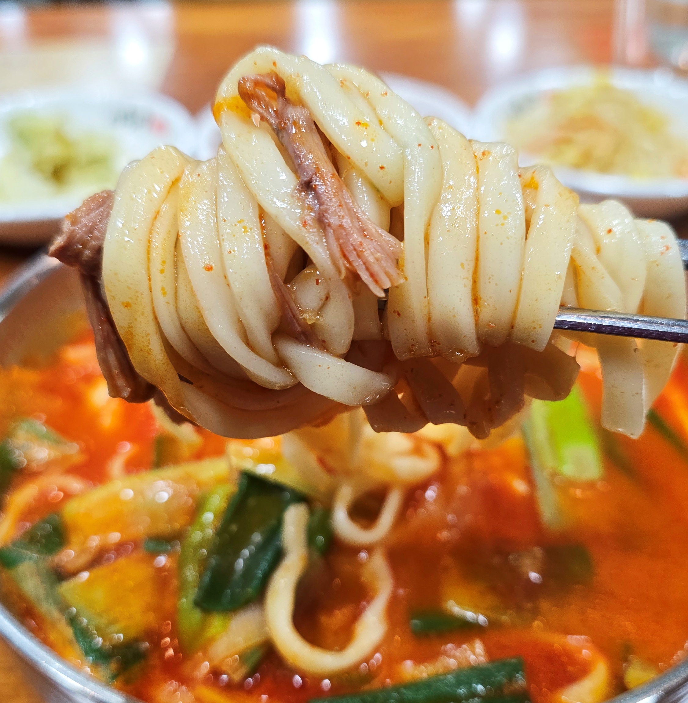🍜 면발 클로즈업 — 진짜 칼국수답게 탱글하면서도 부드러움