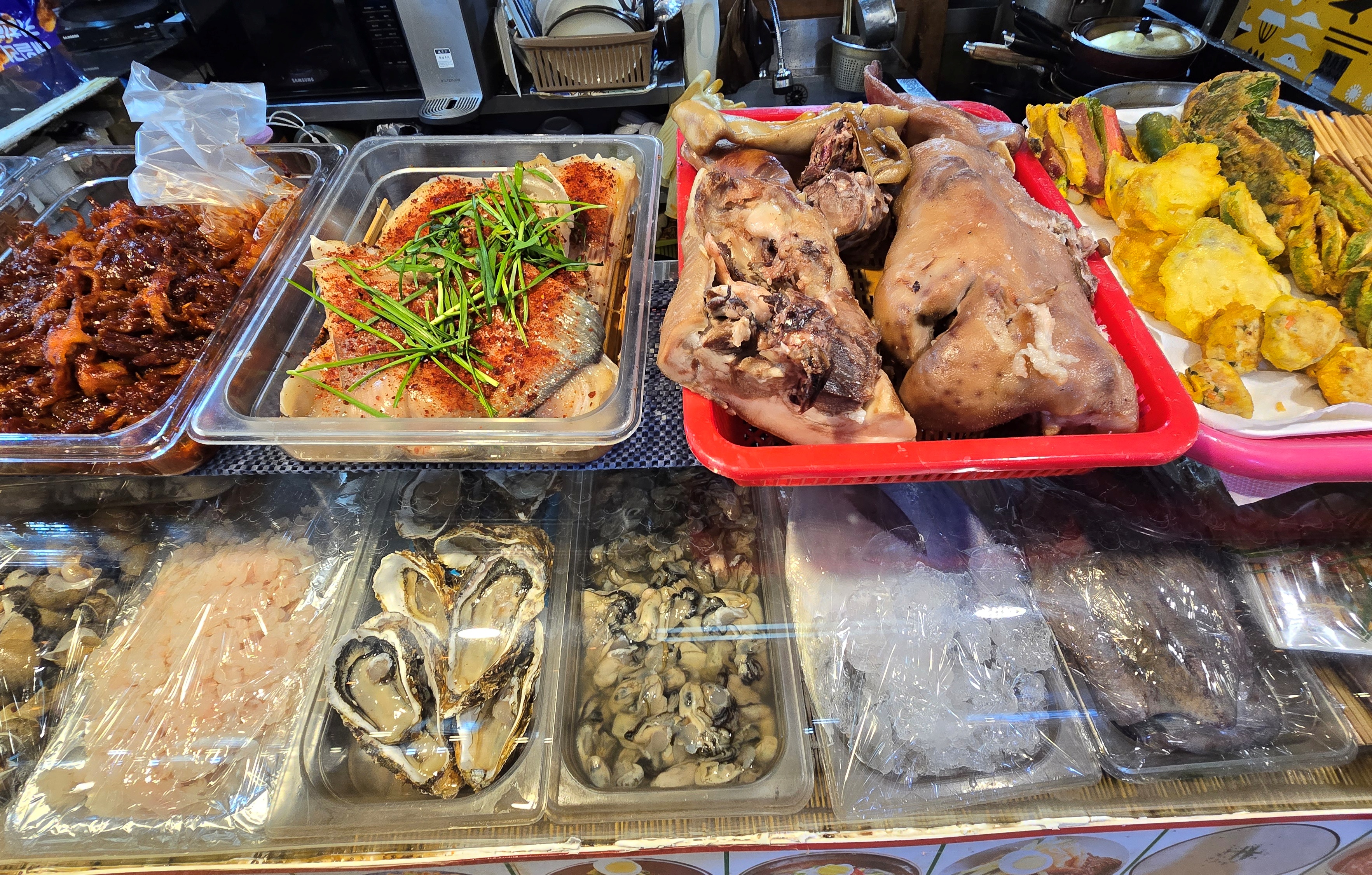 전면에는 코다리, 장어, 닭발, 순대, 전류, 굴, 소라,