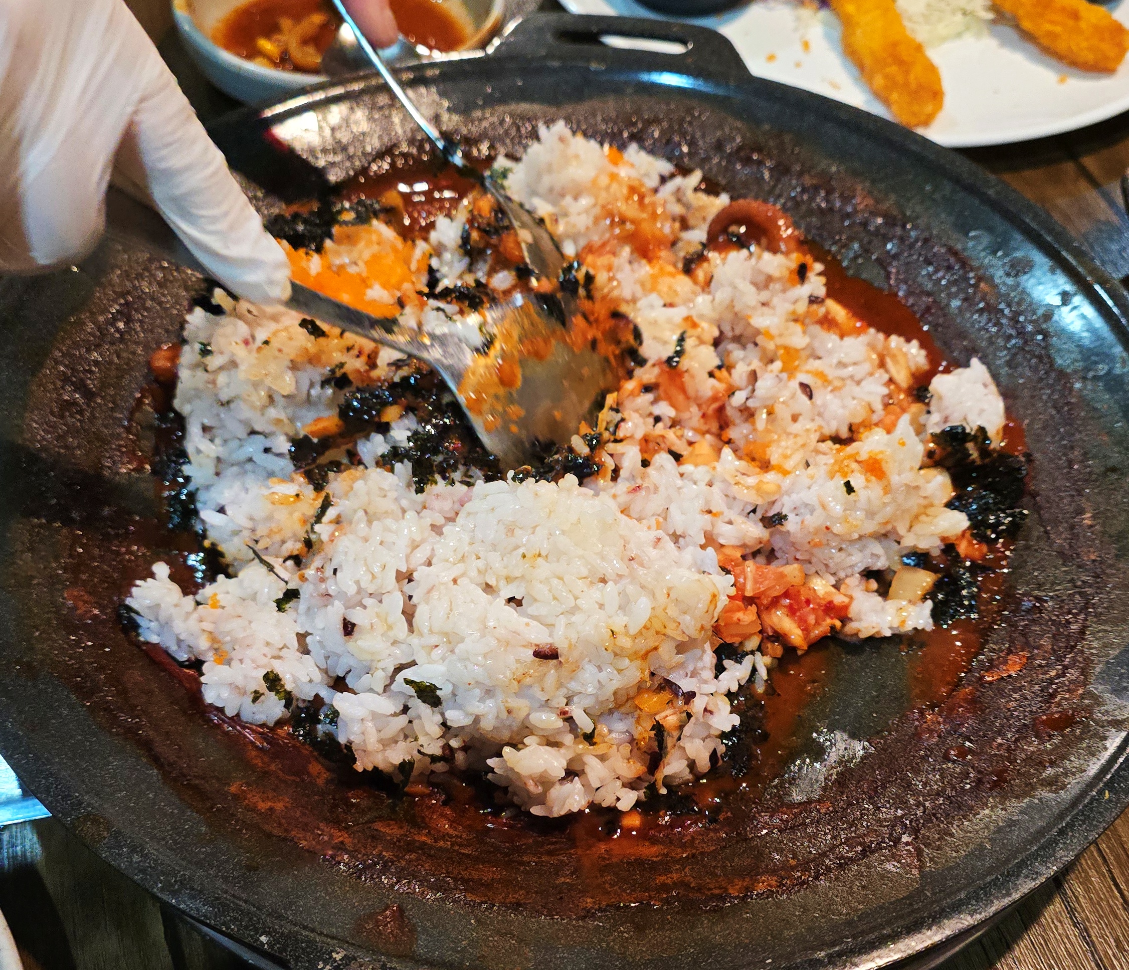 남은 양념 위에 김가루와 밥을 올려 직원분이 직접 볶아주시는데,