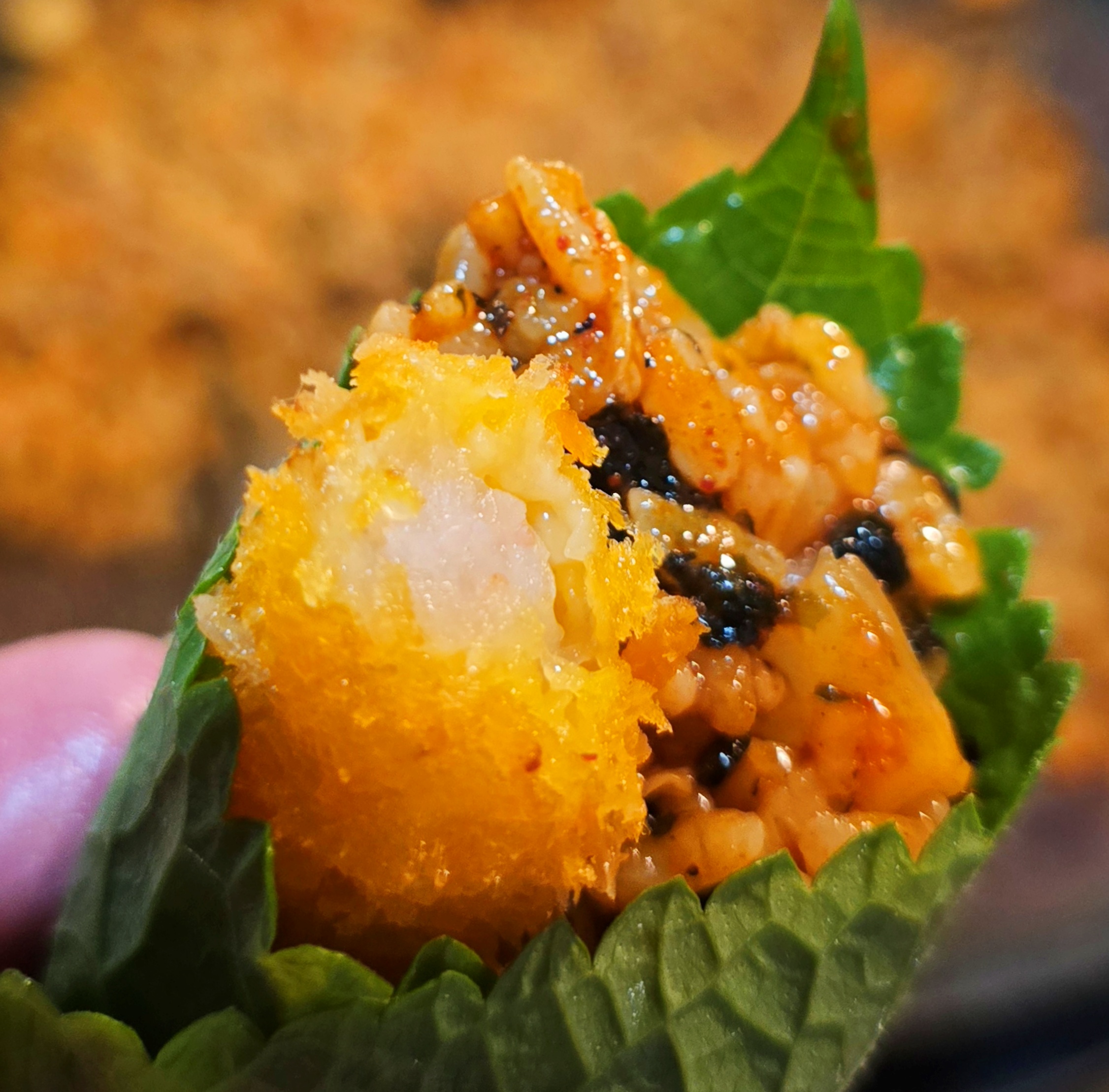 깻잎의 향, 날치알의 톡톡한 식감이 함께 터지면서