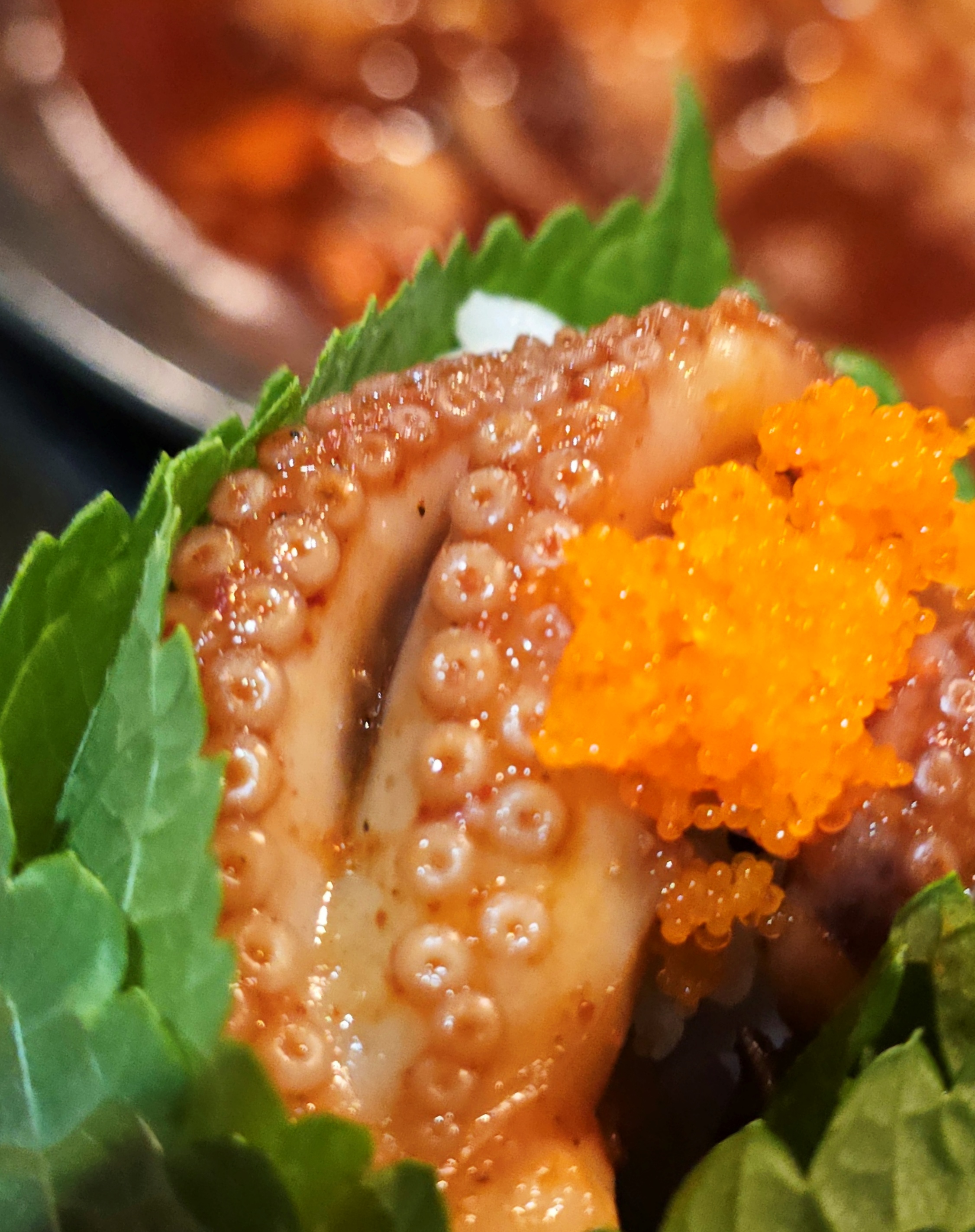 쭈부를 대표하는 시그니처 조합은 바로 깻잎 + 쭈꾸미 + 날치알 쌈.