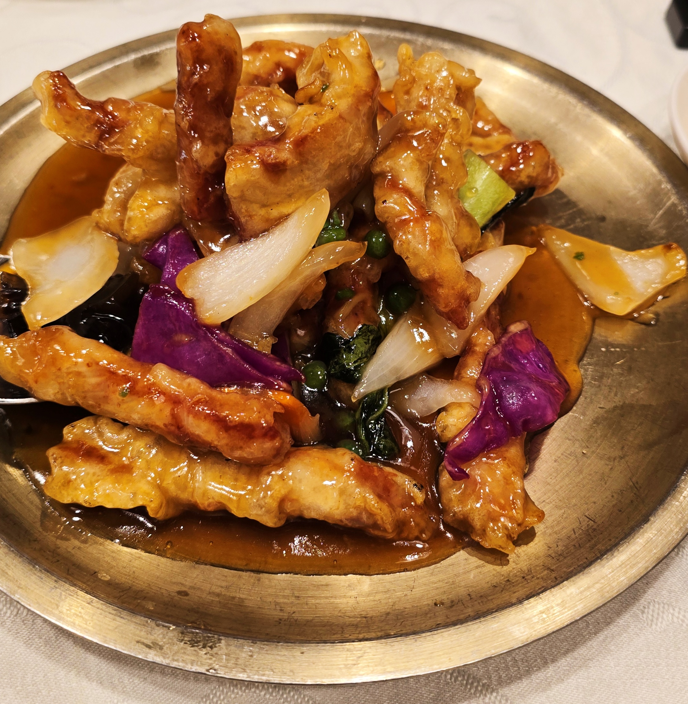 이날 메인 요리로 주문한 탕수육은 바삭한 튀김옷과 윤기