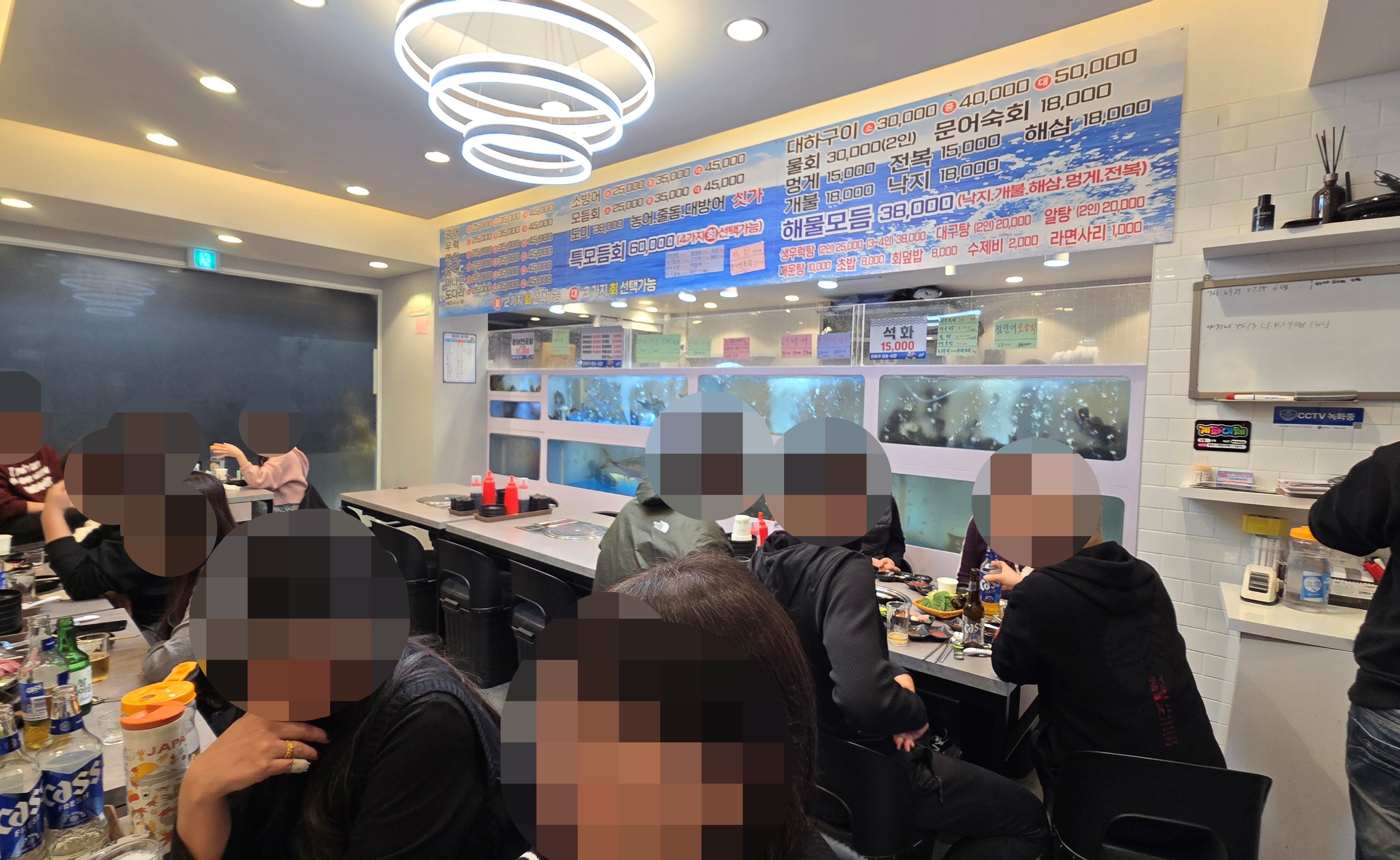 불이 꺼지지 않는 이곳은 회와 해산물을 좋아하는 사람들