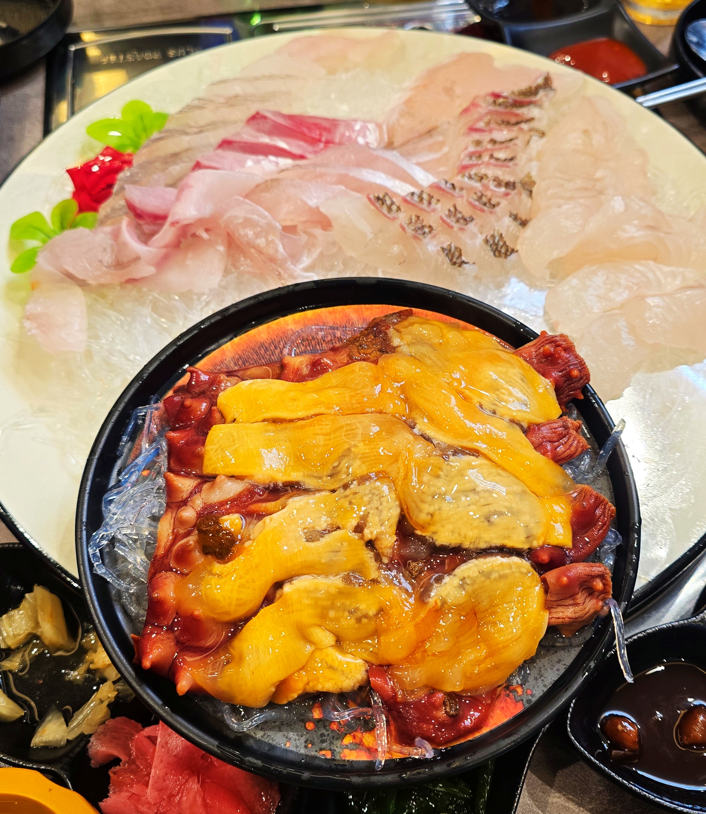 썰려 나오고, 윤기가 흐르는 회살은 보는 것만으로도 신선함이 느껴진다.