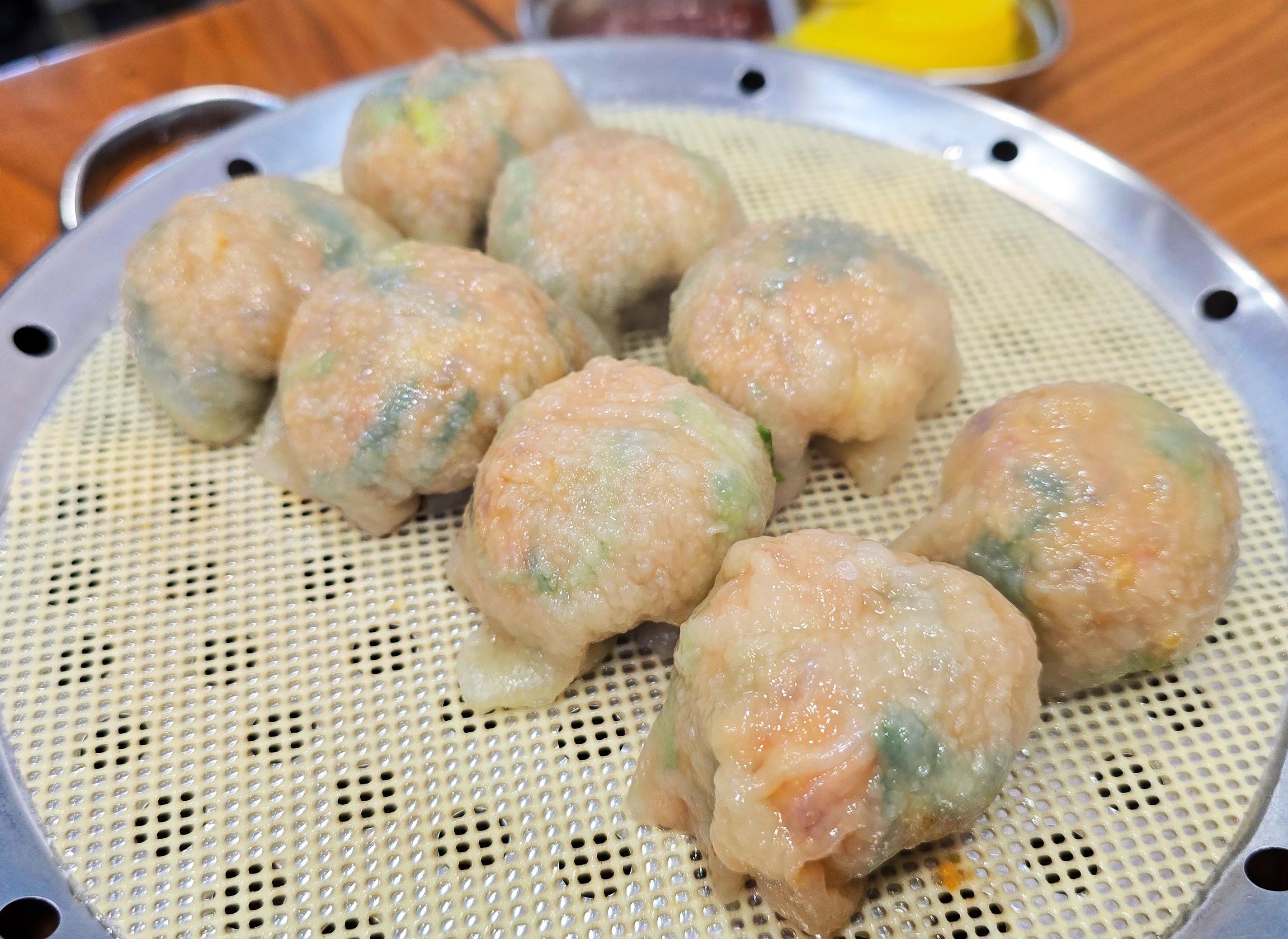 둥글고 단단해 보이는 고기만두는 한입 크기지만